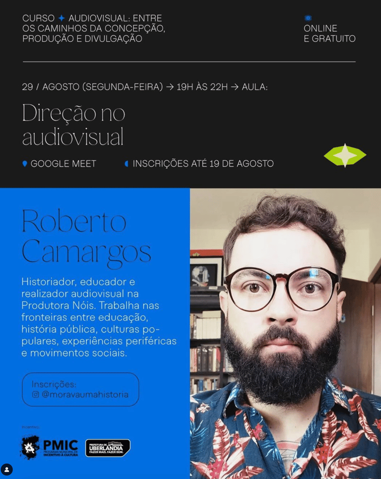 Módulo aula no curso "Audiovisual: entre os caminhos da concepção, produção e divulgação", promovido por Carlos Gabriel como contrapartida do projeto "No meio do caminho morava uma história".